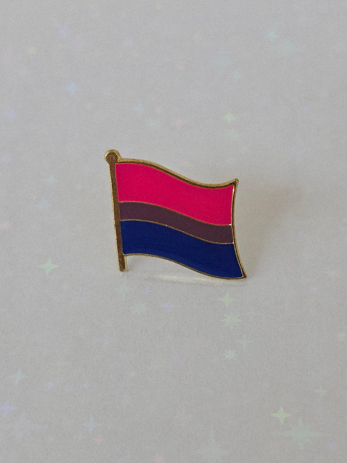 Pin de metal dourado da bandeira Bissexual (cores rosa, roxo e azul).