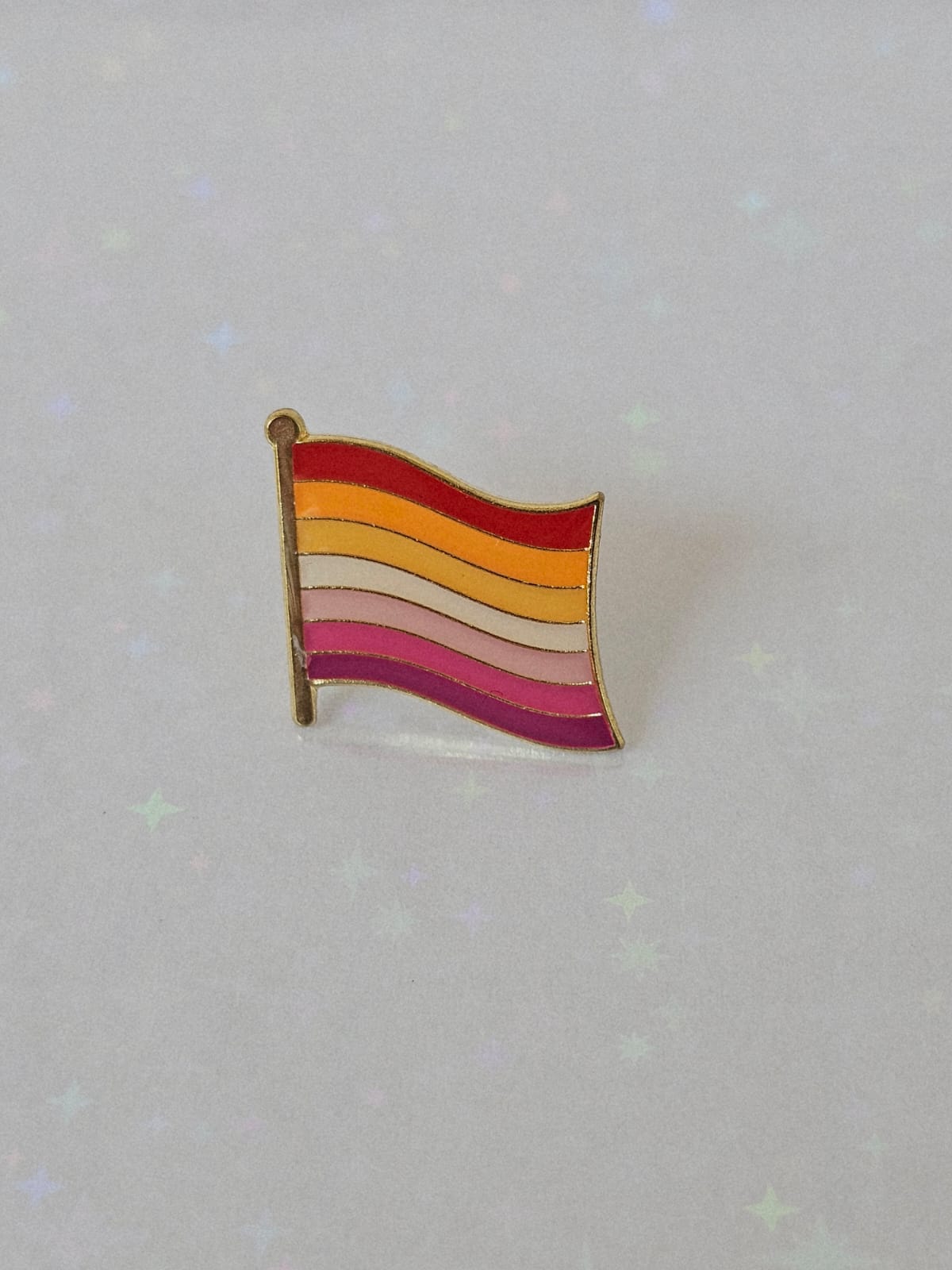 Pin de metal dourado da bandeira lésbica sunset.